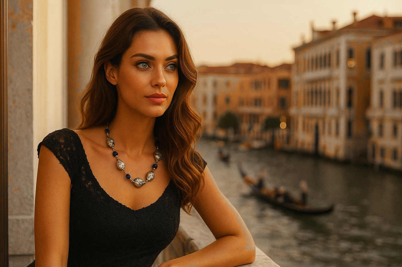 Des Bijoux en Verre de Murano authentiques, qui reflètent la tradition millénaire de l'artisanat du verre à Murano et Venise. Colliers, pendentifs, bagues, boucles d'oreilles et bracelets sont incrustés de feuille d'or, de feuille d'argent ou de cristaux d'Aventurina, qui brillent comme des étoiles. Les bijoux Kalya Blu sont entièrement réalisés à la main, à la flamme du chalumeau et en fournaise traditionnelle vénitienne, par les Artisans et Maîtres Verriers de l'Ile de Murano et Venise.