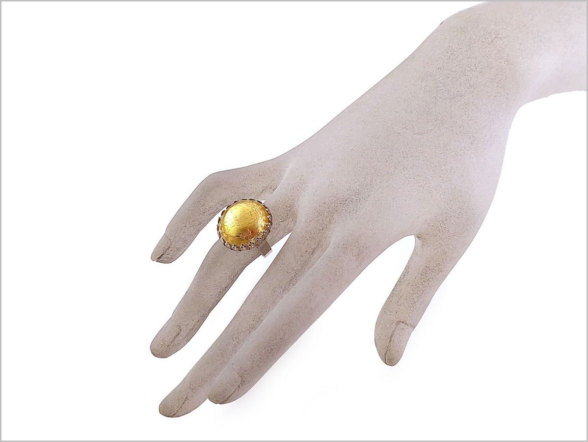 bague cabochon en Verre de Murano entièrement incrustée de feuille d'or.