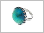 Le cabochon est solidement collé et serti sur une bague réglable en Acier Inox.