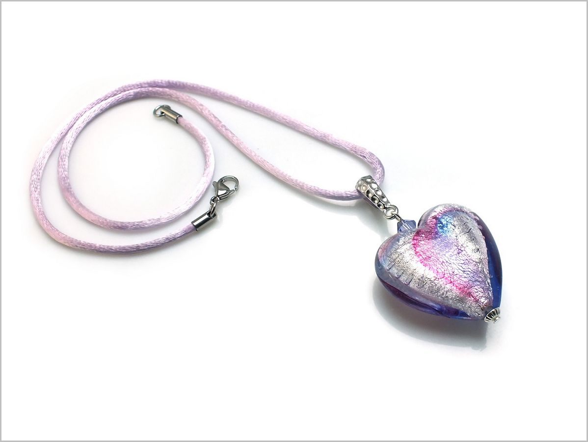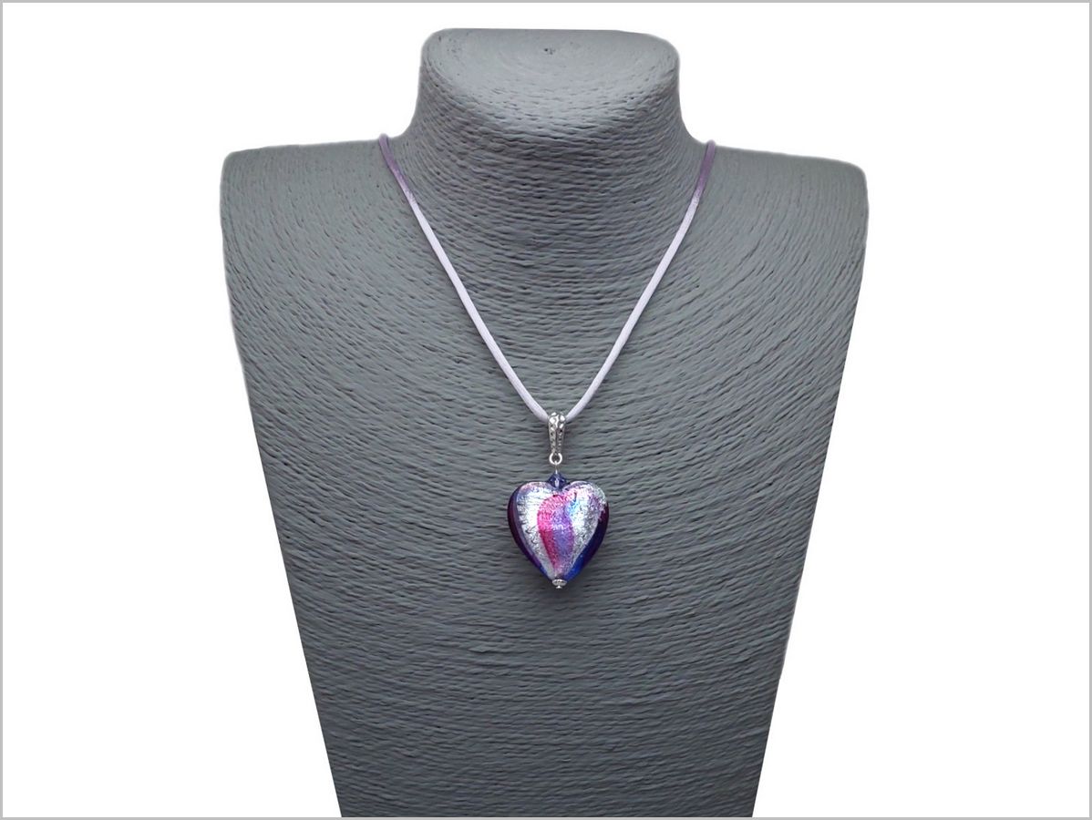 pendentif coeur en Verre de Murano en harmonie de violet et rose